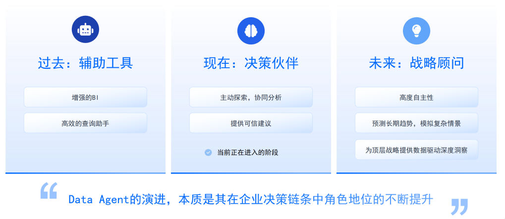 Data Agent的能力是持续进化的。它从被动响应到主动探索,从数据分析到问题定义,不断拓展其能力边界。