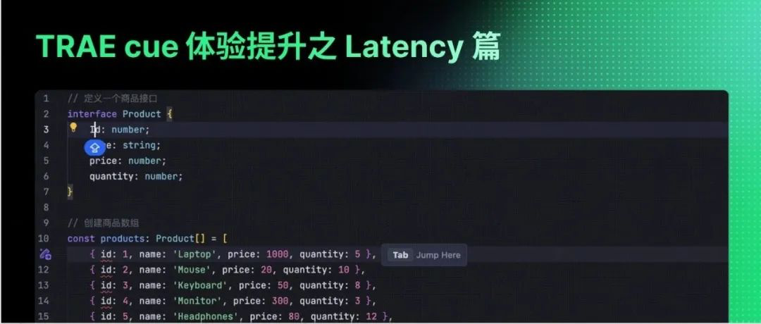 cue 是 TRAE 开发的最新且最复杂的 AI 开发工具功能之一。它将代码补全能力扩展到光标之外,覆盖整个工作空间。该功能能够理解开发者的意图,并在后台工作,提供有助于更快、更全面地完成任务的编辑建议。