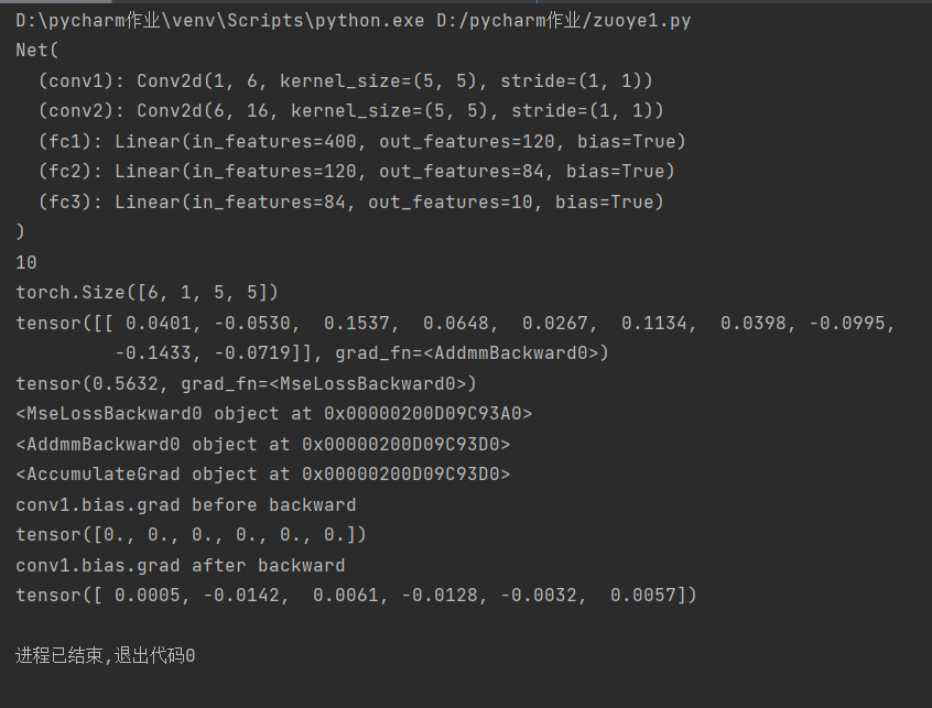 net.zero_grad() # zeroes the gradient buffers of all parameters