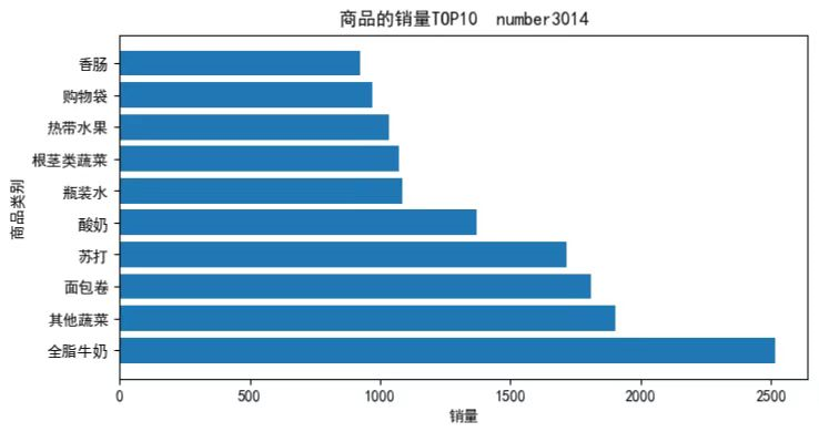 plt.title('商品的销量TOP10 number:3014') # 设置标题