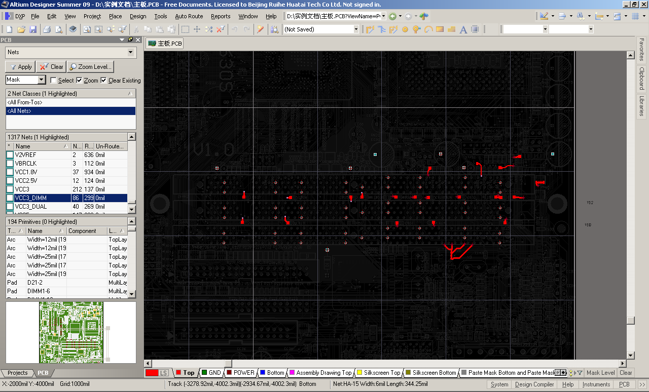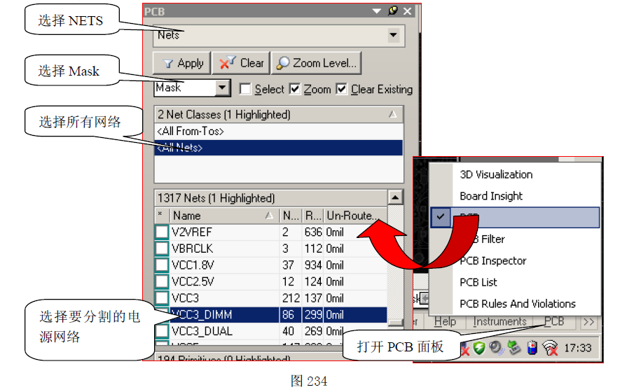 并选择Mask 掩膜浏览形式,这样没有被选中的网络将以单色显示,而被选中的网络则高亮