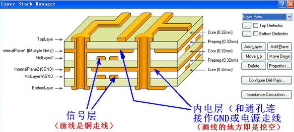 一般情况下,4层PCB这样的,直接用midlayer走某些信号,然后中间层铺GND和电源就可以了。