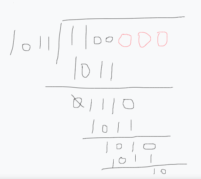 特殊的除法运算(就是上下2行相同就是0,不同就是1,然后补齐到和除数一样的位数,这里是4位,然后计算到最后)得出是 10 ,因为最大的平方数是3,因此要补齐(前面补0),补齐后结果是010