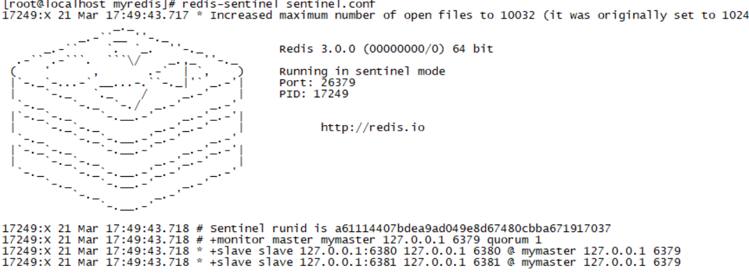 redis-sentinel /myredis/sentinel.conf