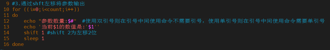 shift用于外部传参到循环时,管理参数,是参数位置向左移动,默认1位,shift 2 则移动2位。