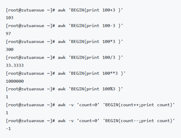 awk除了可以定义变量外,还可以定义数组,进行运算,流程控制等等。