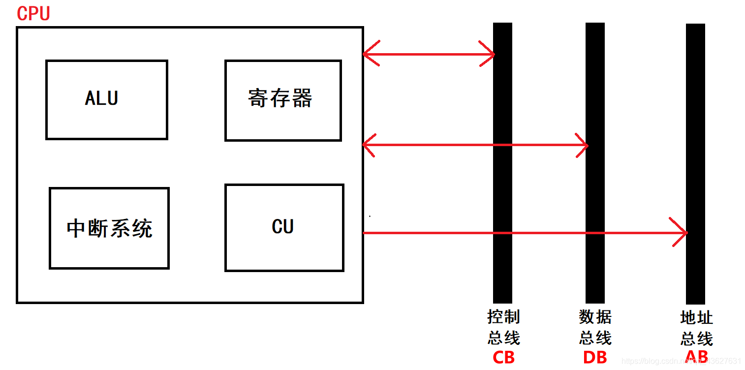 CPU内部由ALU(算术逻辑单元)、CU(控制器)、寄存器