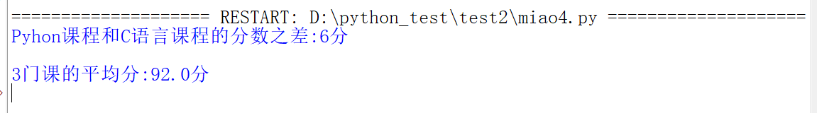 print("Pyhon课程和C语言课程的分数之差:"+str(sub)+"分\n")