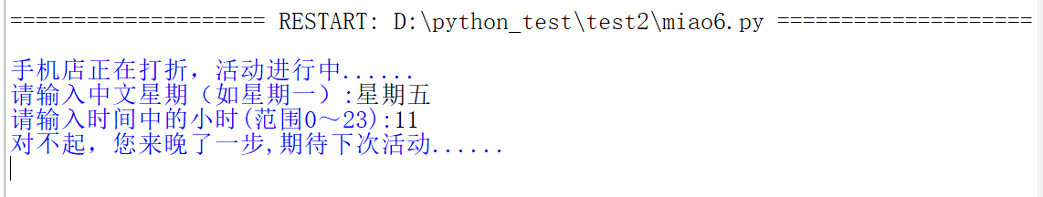 inttime=int(input("请输入时间中的小时(范围0~23):"))