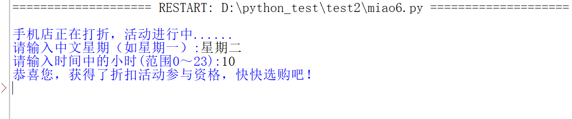 print("恭喜您,获得了折扣活动参与资格,快快选购吧!")