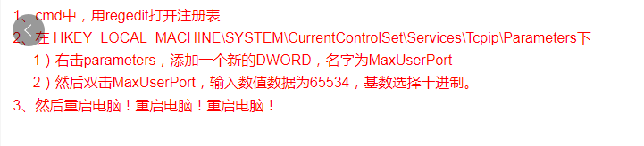 2.修改最大端口,注册表