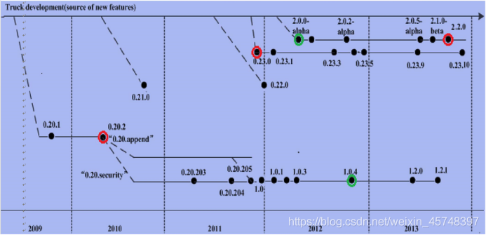 1.用图与自己的话,简要描述Hadoop起源与发展阶段。