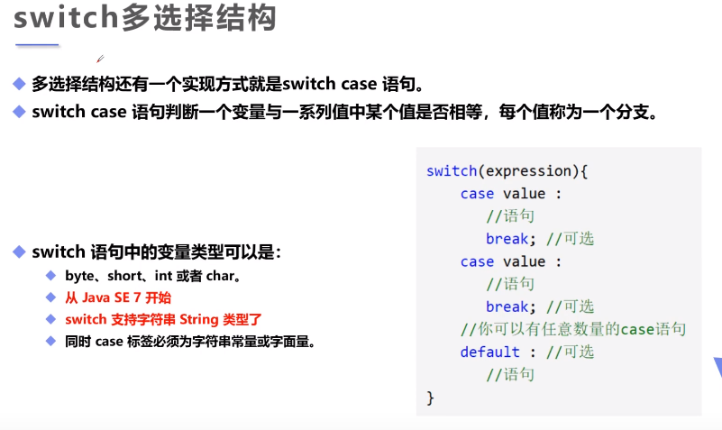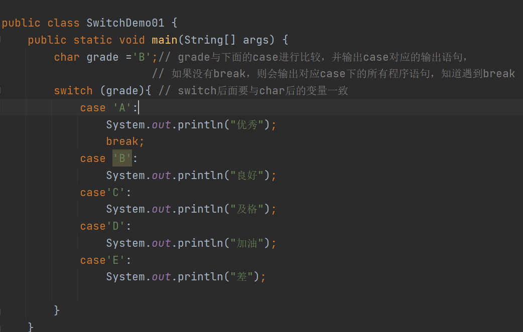 case穿透:每一个case语句后面都要加上break,否则程序会执行此cese语句之后的所有的语句,知道遇到break