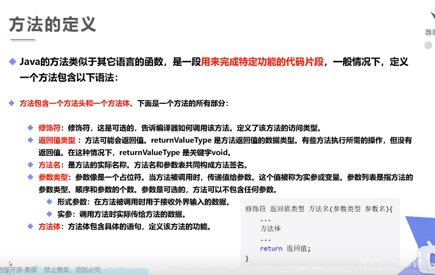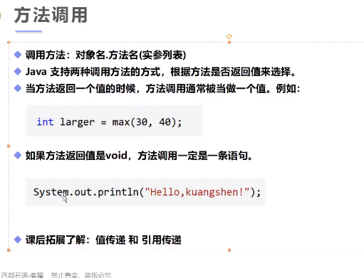 2.当方法返回值为空时,方法调用一定是一条语句。