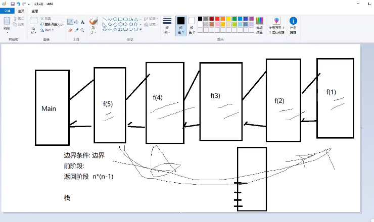 前阶段:f(5)=5*f(4)`````f(2)=2*f(1) ,当去的值,f(1)=1是,程序进入返回阶段