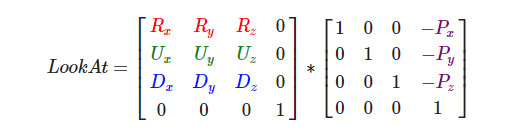 二、如下摄像机的空间向量乘以右边的平移向量矩阵则会得到对应的view的位置;如果的P使用负值是为了把世界平移到与我们自身移动的相反方向