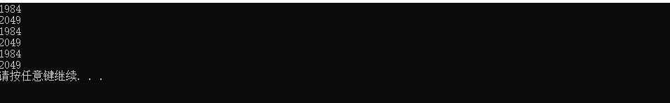 #include<stdio.h> #include<stdlib.h> #define N 4 int main() { int x[N]={1,9,8,4}; int i; int *p; for(i=0;i<N;++i) printf("%d",x[i]); printf("\n"); for(p=x;p<x+N;++p); printf("%d",*p); printf("\n"); p=x; for(i=0;i<N;++i) printf("%d",*(p+i)); printf("\n"); p=x; for(i=0;i<N;++i) printf("%d",p[i]); printf("\n"); system("pause"); return 0; }