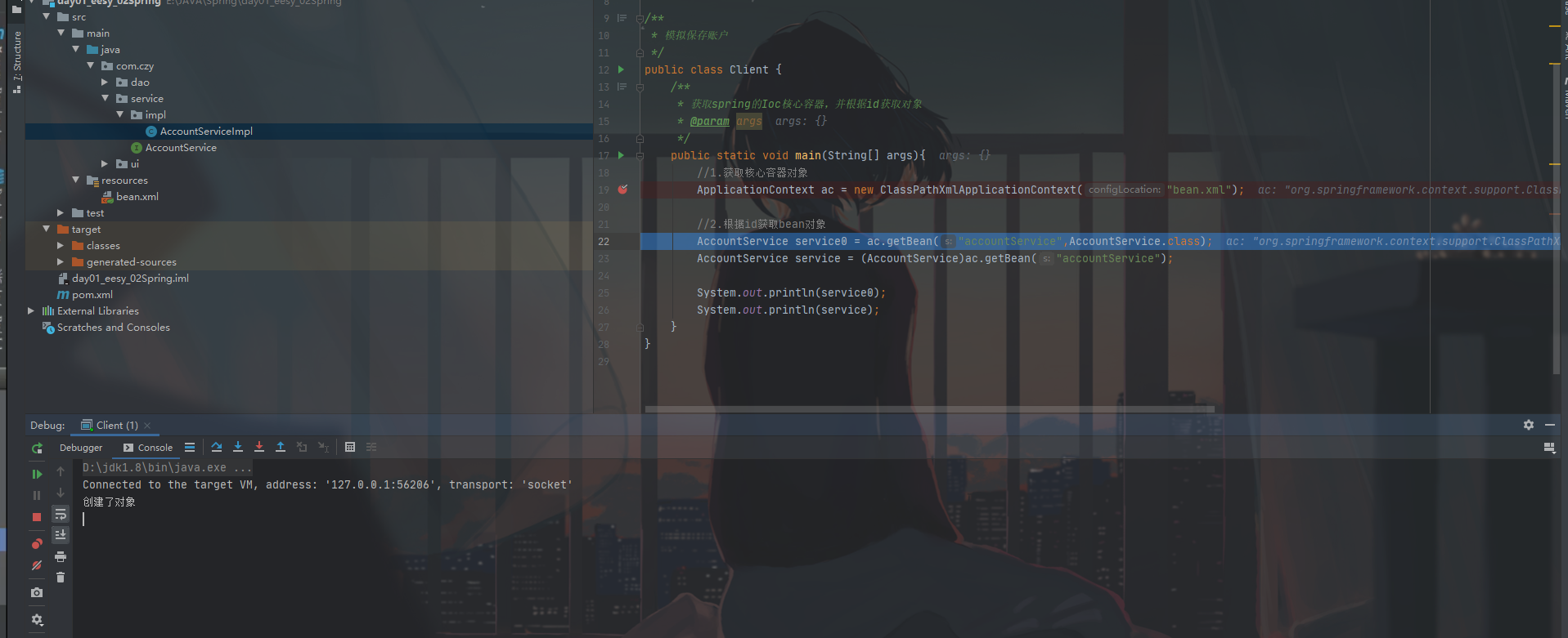 它在构建核心容器时,创建对象采取的策略是采用立即加载的方式。也就是说,只要一读取配置文件就马上创建配置文件中的对象