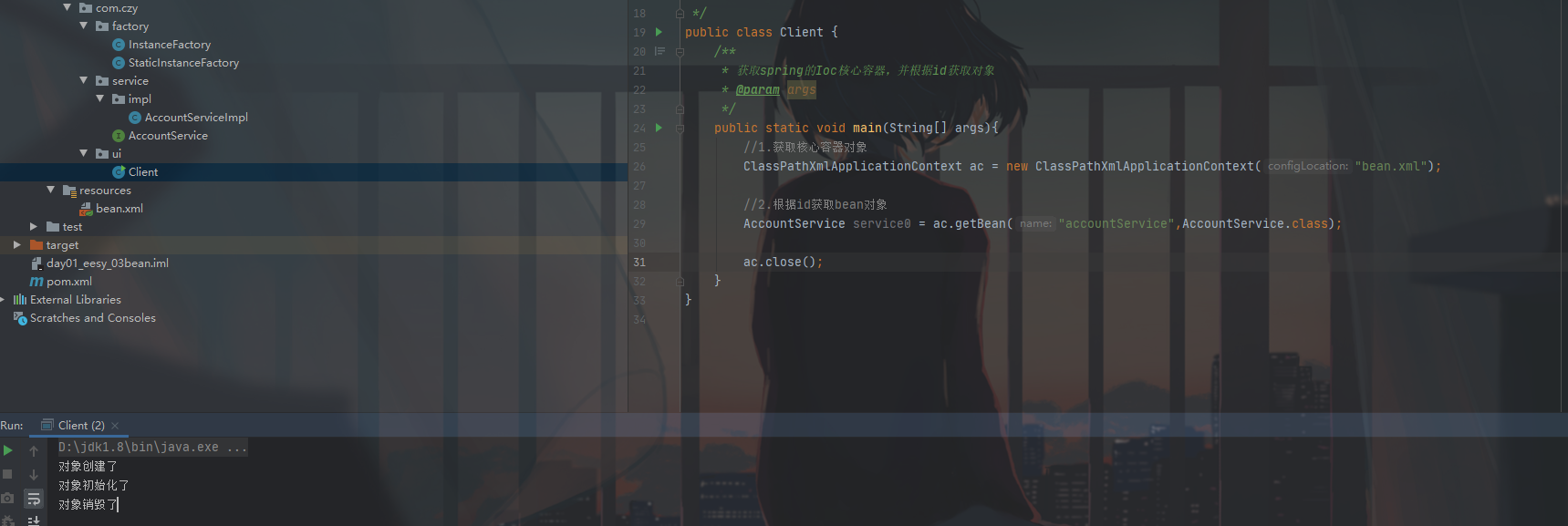 <bean id="instanceFactory" class="com.czy.factory.InstanceFactory"></bean>