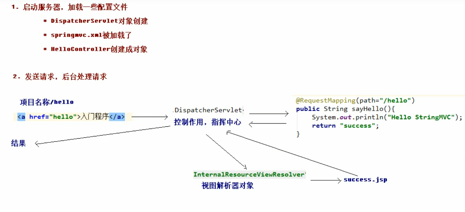 SpringMVC是基于Servlet实现的(structs2是基于filter),有点类似于BaseServlet的抽取(BaseServlet链接),通过拦截所有路径,获取路径进行字符串处理,得到请求的路径,再调用其相应的类和方法。