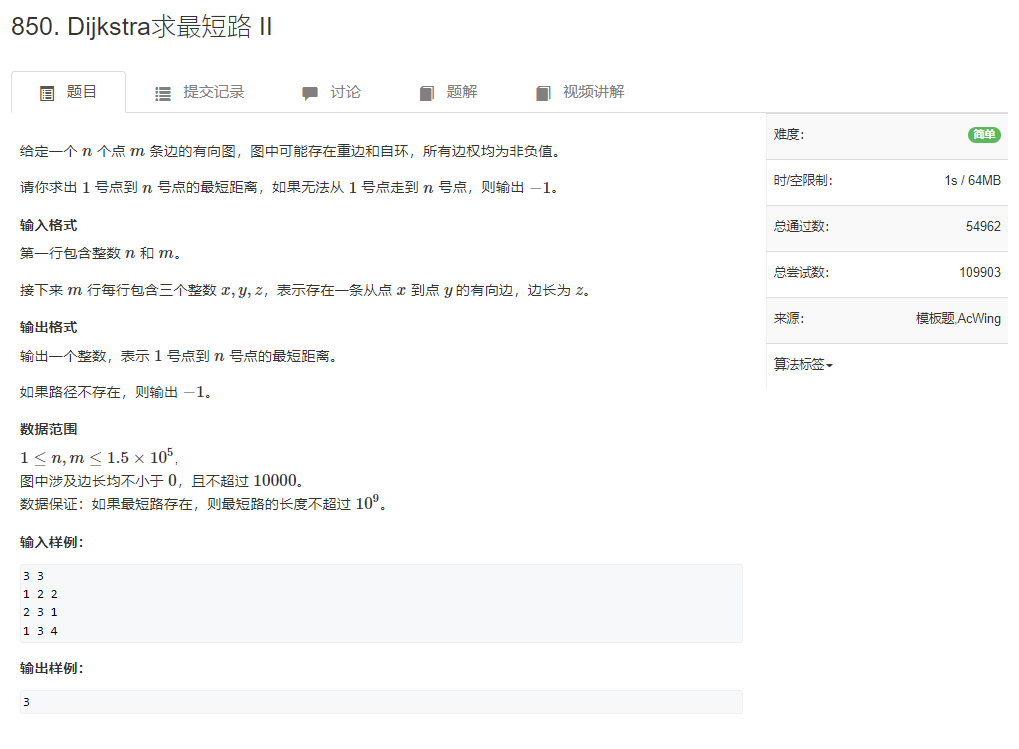 AcWing850.Dijkstra求最短路 II