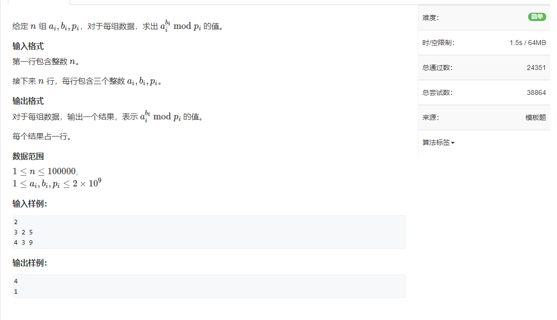 【快速幂】AcWing875.快速幂——模板题