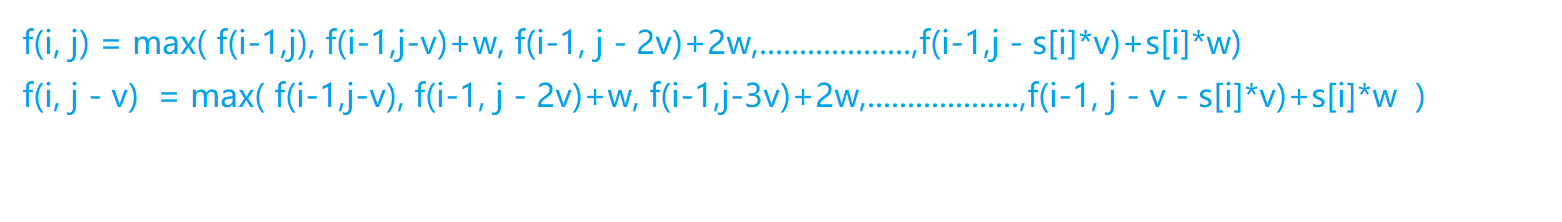 f[i][j] = max(f[i][j], f[i-1][j - k * v[i] ] + k * w[i]);