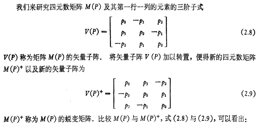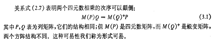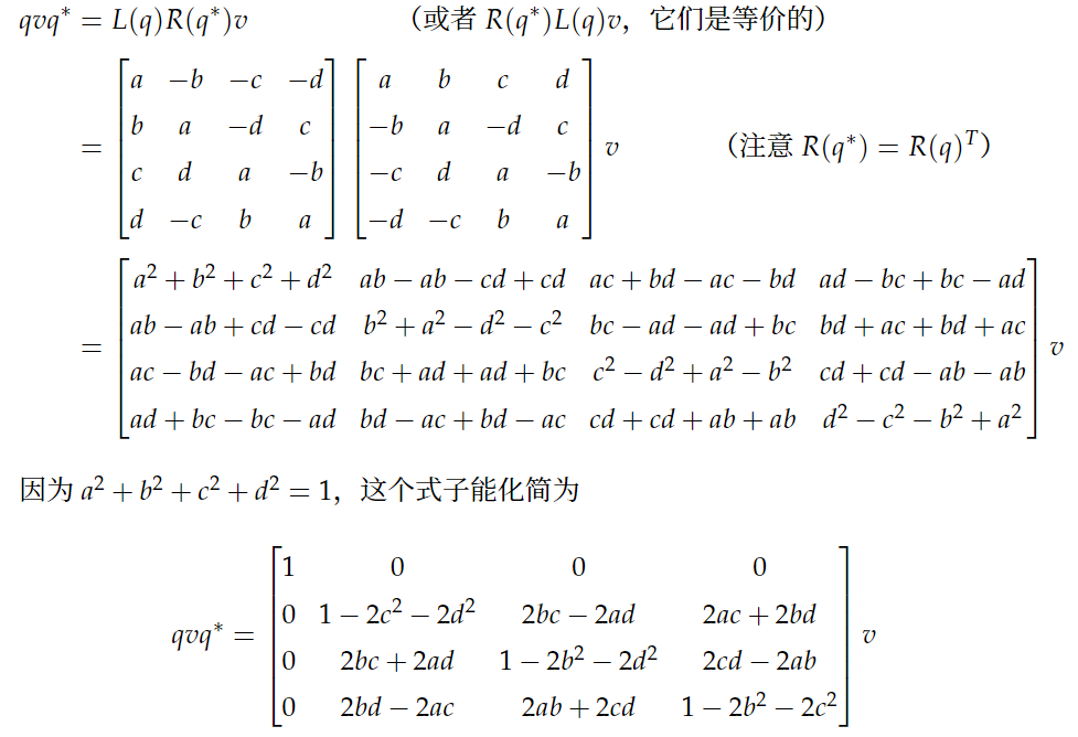 3.产生的\(qw^{'}\)一定是纯四元数,也就是说它的第一项为0,有如下形式:
