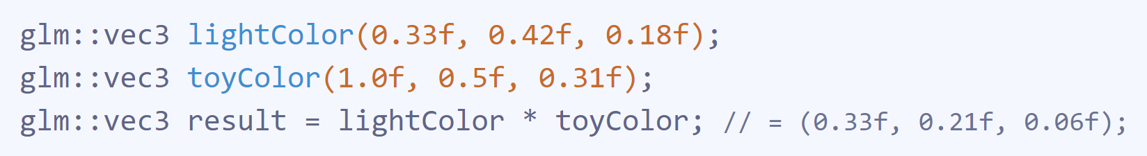 物体呈现的颜色可以由lightColor与ObjectColor进行点乘获得