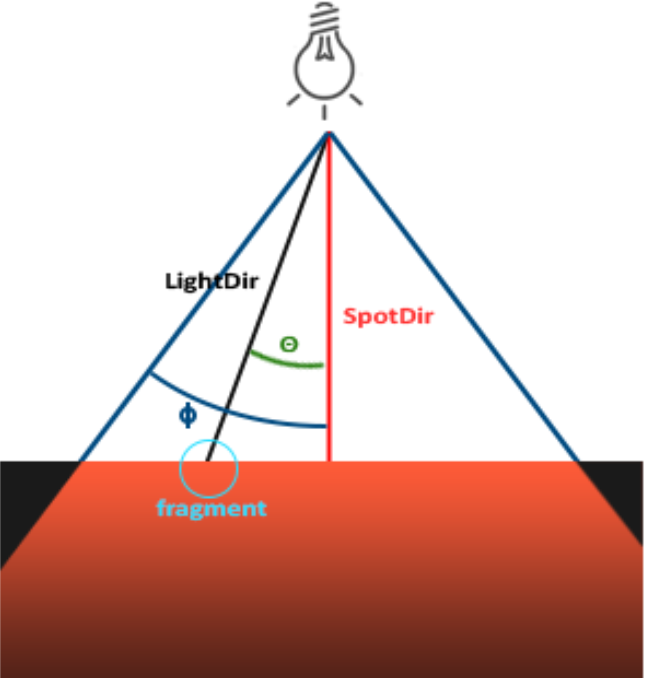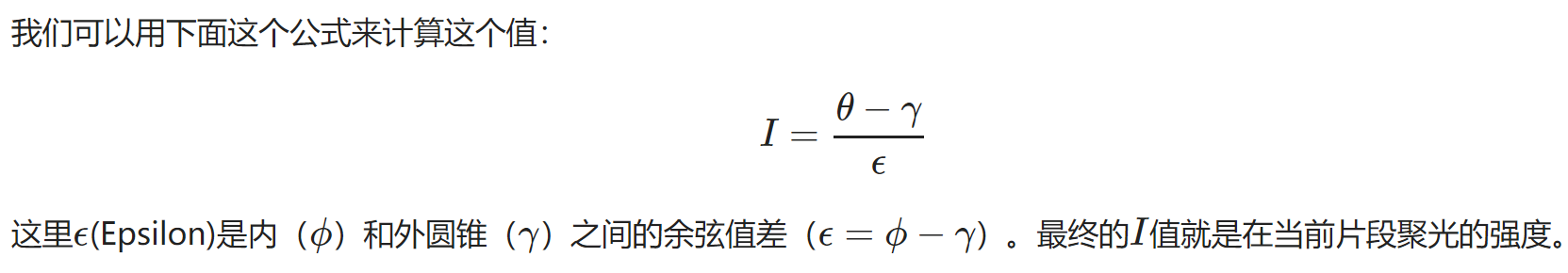 在夹角\(\psi\)之间的片元会被照亮,之外的不会被照亮