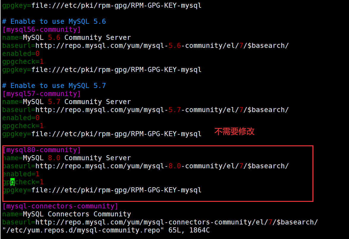 vim /etc/yum.repos.d/mysql-community.repo