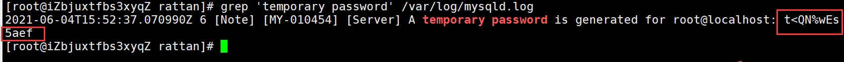 grep 'temporary password' /var/log/mysqld.log