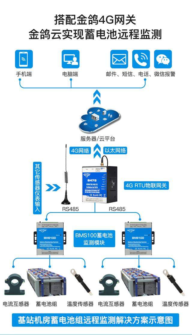 搭配钡铼4G传输网关和云平台就可实现数据上云,电池电压的远程监测,一个网关可以挂载多达32个电压监测模块,大大的节省了成本。而且钡铼作为一家专注物联网硬件研发的厂家,目前网关内置了阿里云、华为云、亚马逊AWS、Thingsboard等平台的云引擎,通过网关可以直接将电压数据上传到相关的平台!