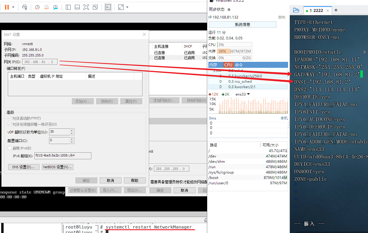 这个一一对应就好,设置完 systemctl restart network 重启网络服务