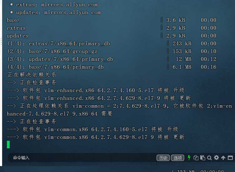 安装yum文本编辑器,可以使用vim命令操作文本 ---命令: yum install vim