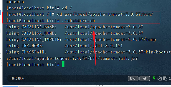 cd /usr/local/apache-tomcat-7.0.57/--------------进入目录