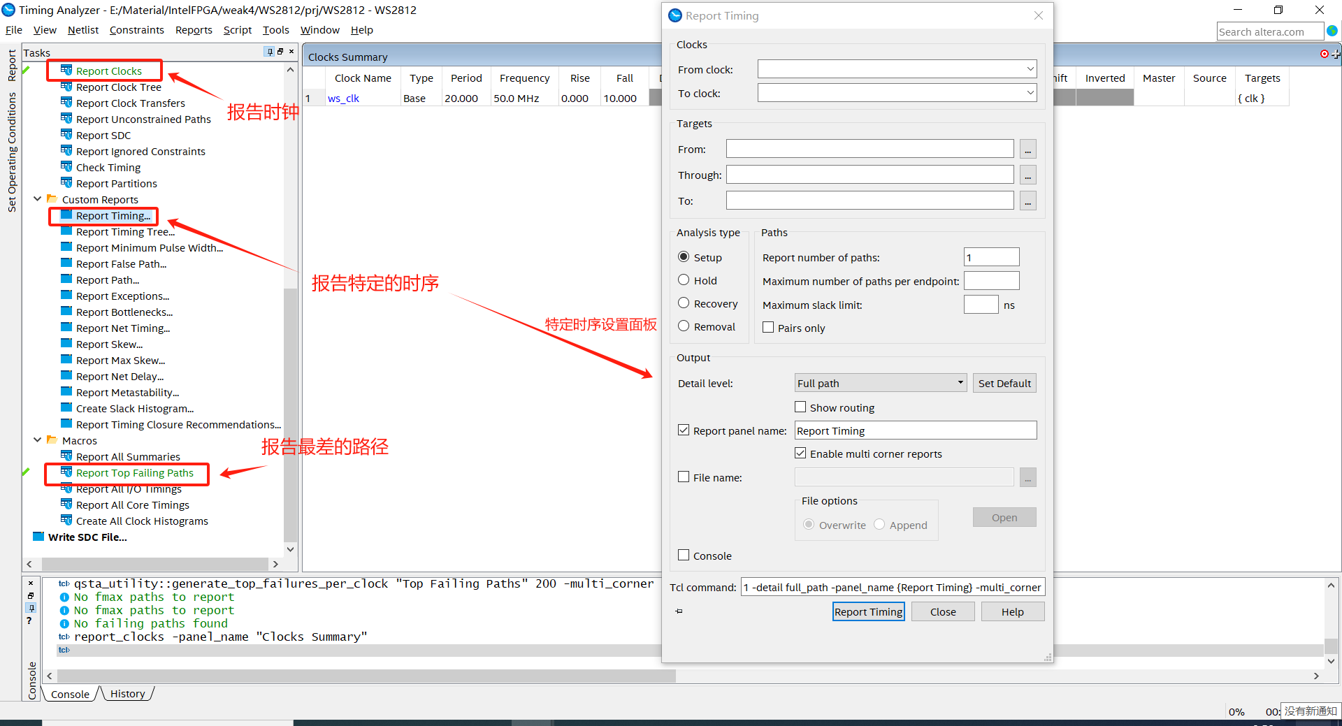 这是几个常见的时序报告的操作步骤,至于其他的可以尝试自己点击进行测试。