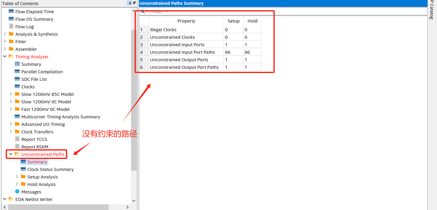 1)在进行初步sdc时钟约束后,可能还会出现一些路径未约束的情况