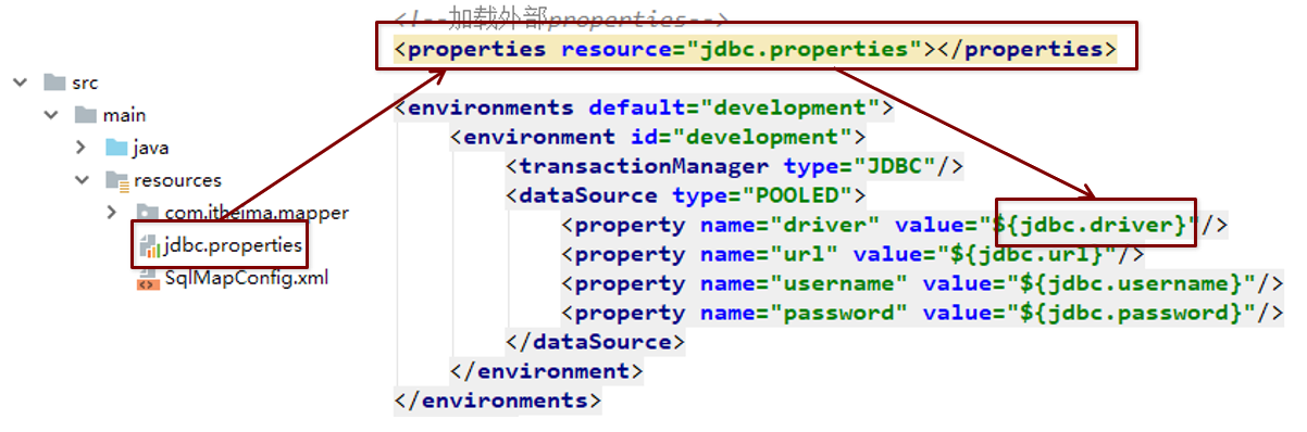 <properties resource="jdbc.properties"></properties>