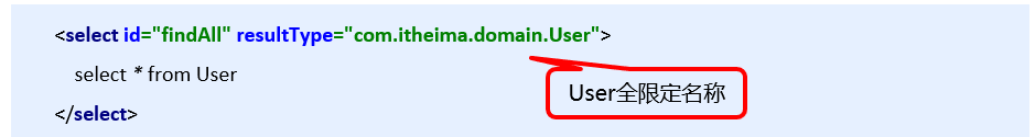<select id="findAll" resulttype="com.cz.domain.User">
