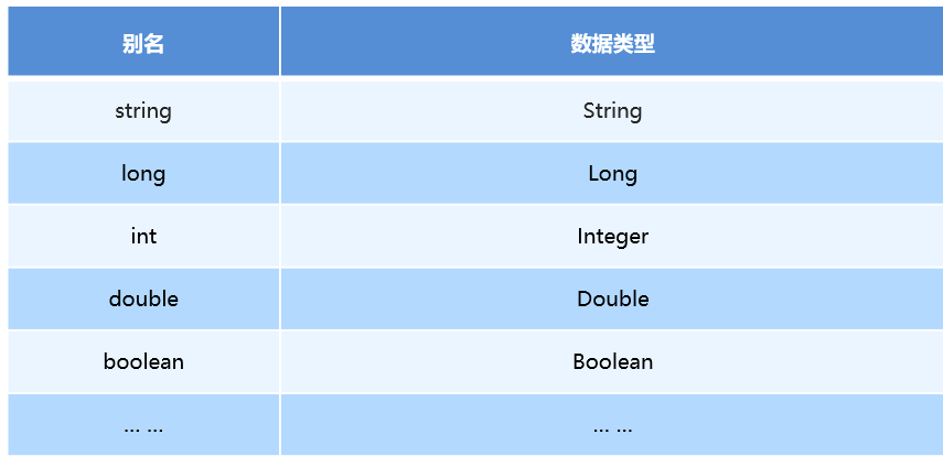 类型别名是为Java 类型设置一个短的名字。原来的类型名称配置如下