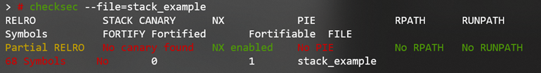 使用checksec工具检查编译出的文件