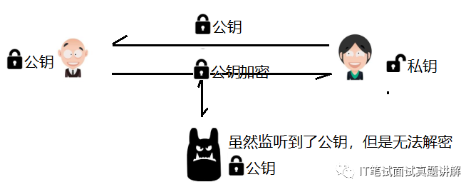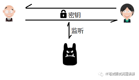 但是这种对称密钥的交换存在通信被监听的风险,密钥交换被监听,密钥信息落入黑客之手,则失去了加密的意义。