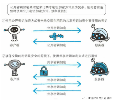 SSL协议中加密传输,采用对称加密和非对称加密的混合加密方式完成。