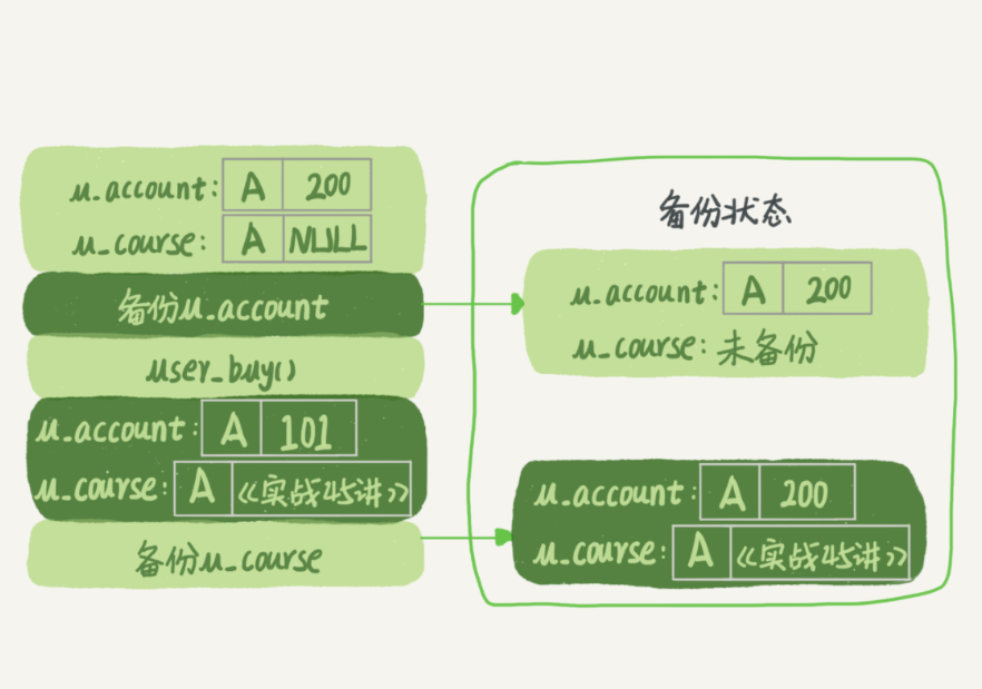 可以看到,这个备份结果里,用户A的数据状态是“账户余额没扣,但是用户课程表里面已经多了一门课”。如果后面用这个备份来恢复数据的话,用户A就发现,自己赚了。