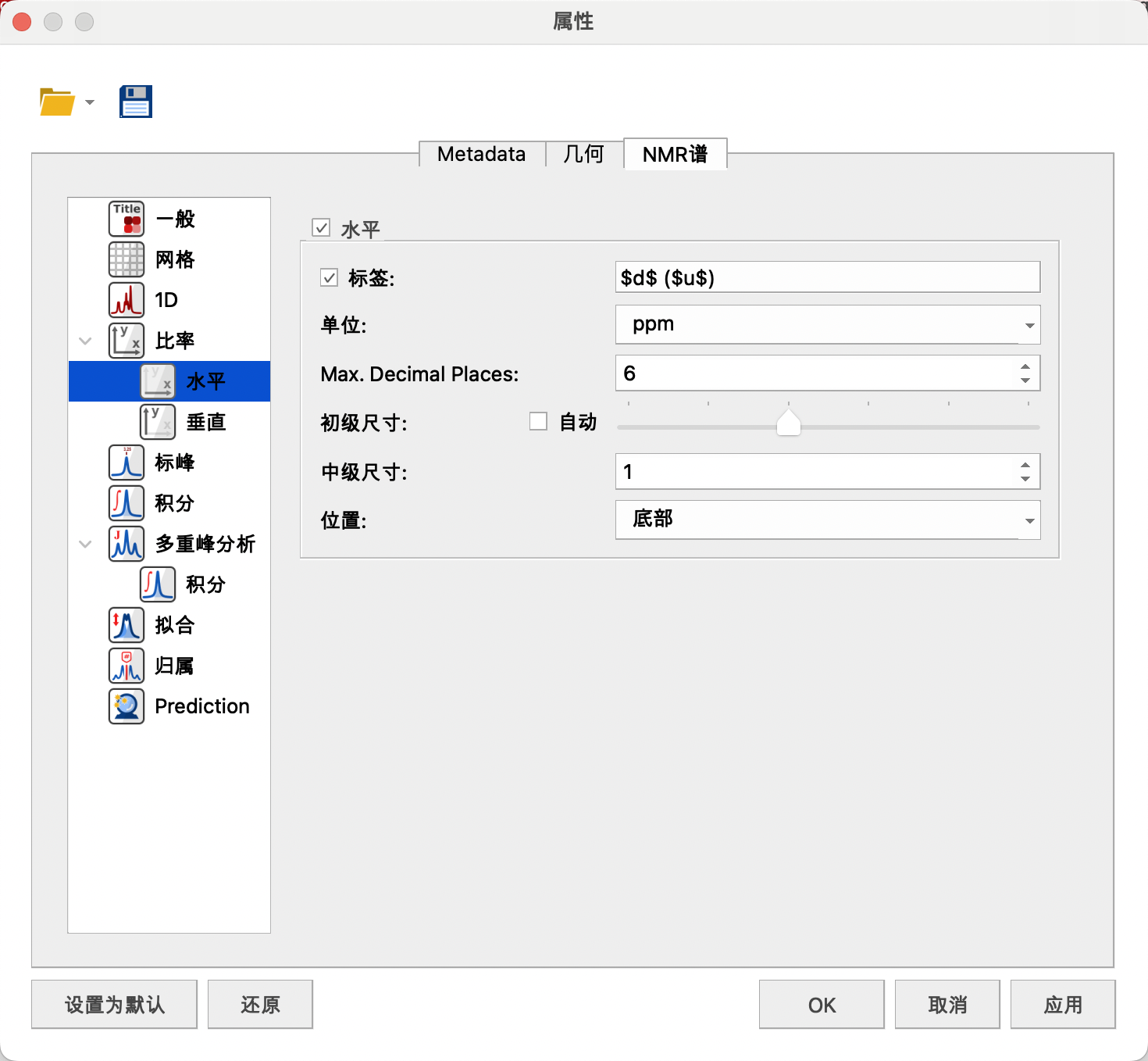 取消勾选Peak Labels,不显示标记的化学位移值。