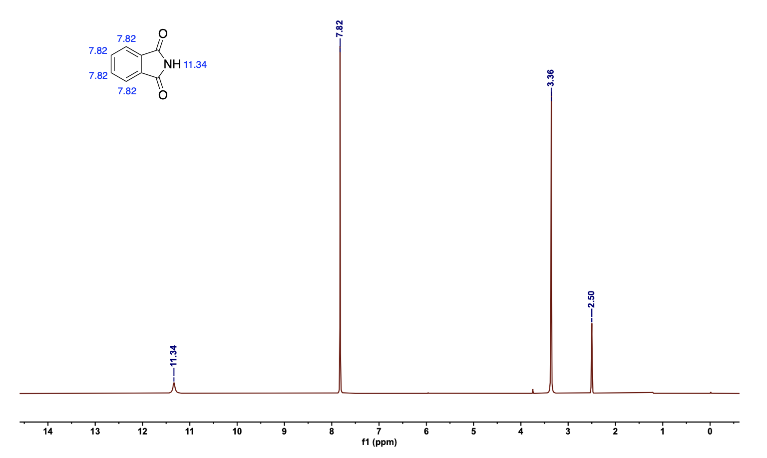 由于我们所研究的物质是已知的,一般使用核磁氢谱来验证我们的产物。因此可以在网上查找所研究物质的核磁氢谱长啥样,与自己的谱图进行对比,手动标记出物质氢原子对应的峰。