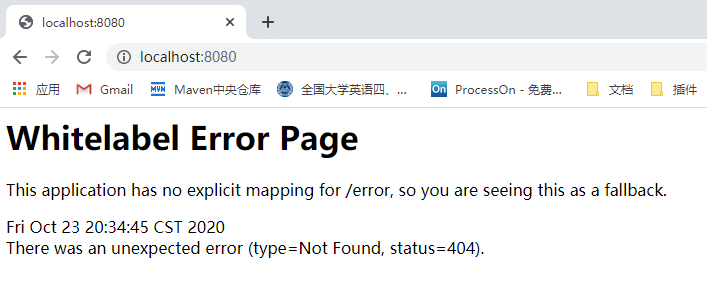 打开http://localhost:8080我们的本地服务器可以发现,出现了一个“错误”的页面,