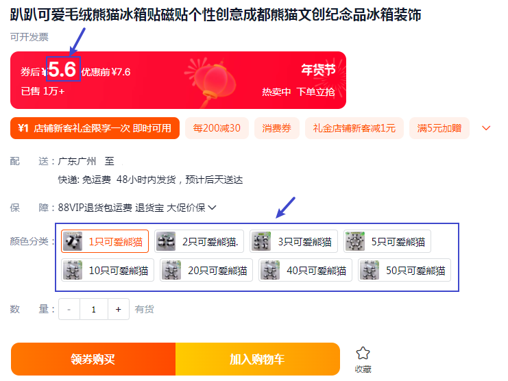 需求:客户需要抓取淘宝商品的不同组合价格,步骤如下图通过切换分类获取相应的价格