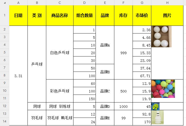 - (2) 客户提供的商品表格模板如下,表格里面存在大量的合并区域、图片。需要获取每一行商品进行上架